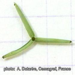 leaf tip acute, margin minutely toothed leaf width <2 mm |