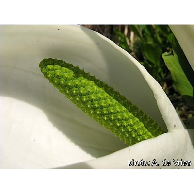 spathe white, up to 20 cm, flowers 2-3 mm, odourless |
